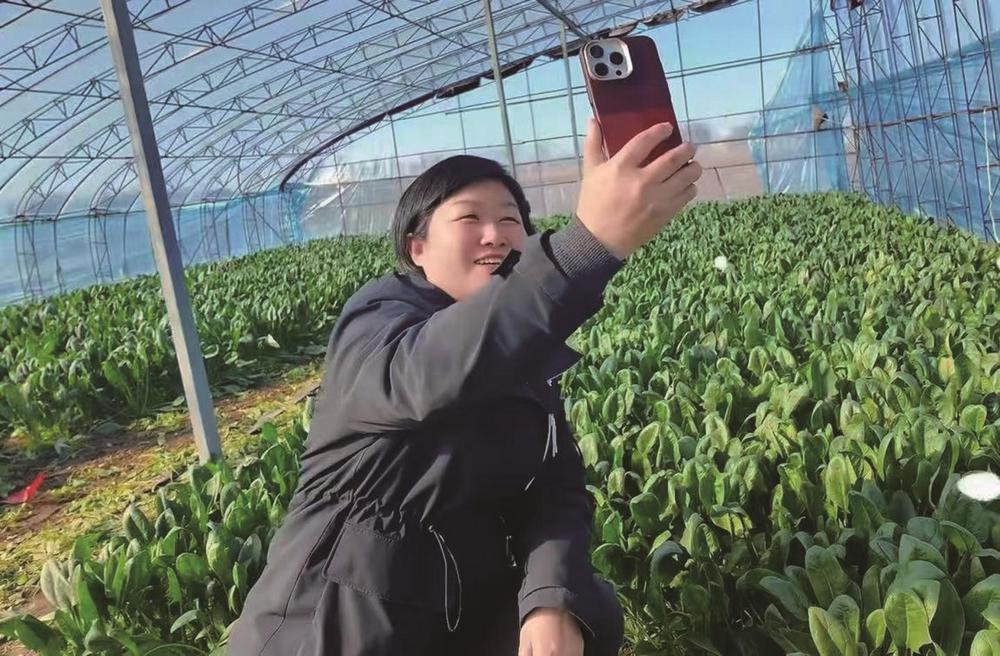 图为耿娟在蔬菜大棚里直播。 路南 供图