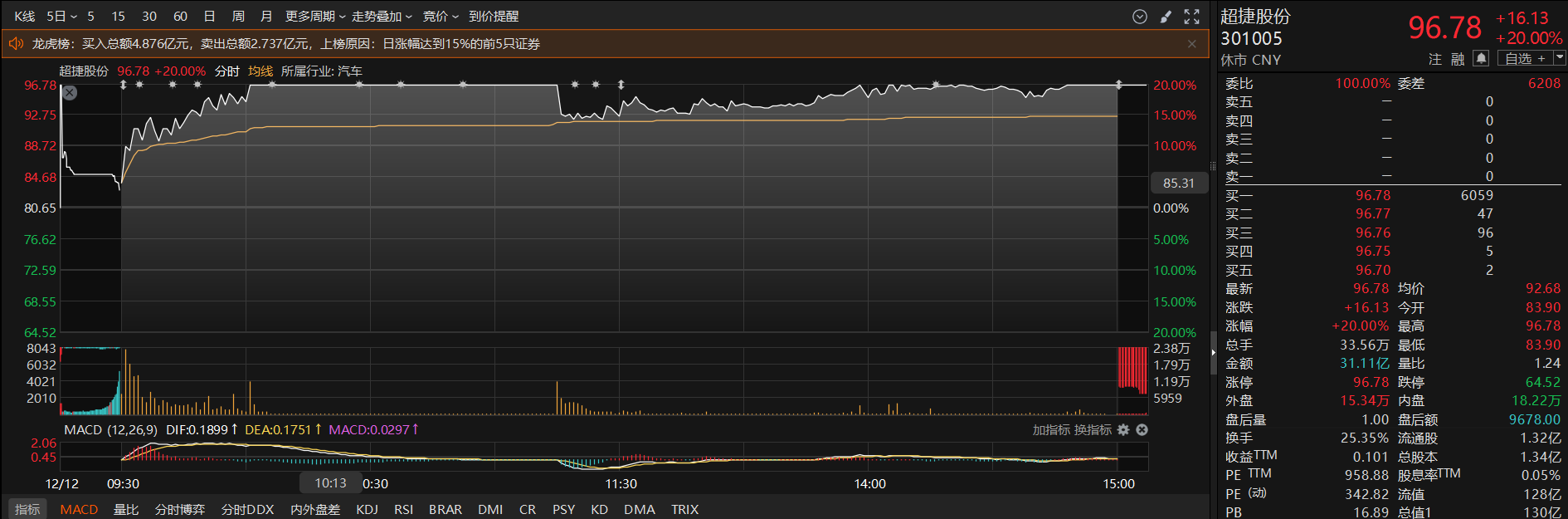 周二发布机构调研纪要表示,公司产品覆盖国内四大发射基地,保障了300余次火箭发射任务,为部分院所总体部配套,提供能源信号传输整体解决方案。火箭方面,根据发射任务情况来看,公司为长征系列、神舟系列等火箭进行配套,覆盖的市场份额在70%-80%左右;卫星方面,公司源头上参与模块化、批量化卫星生产的电装设计,目前部分产品为独家供应。二级市场上,华菱线缆周五收盘录得2连板。
