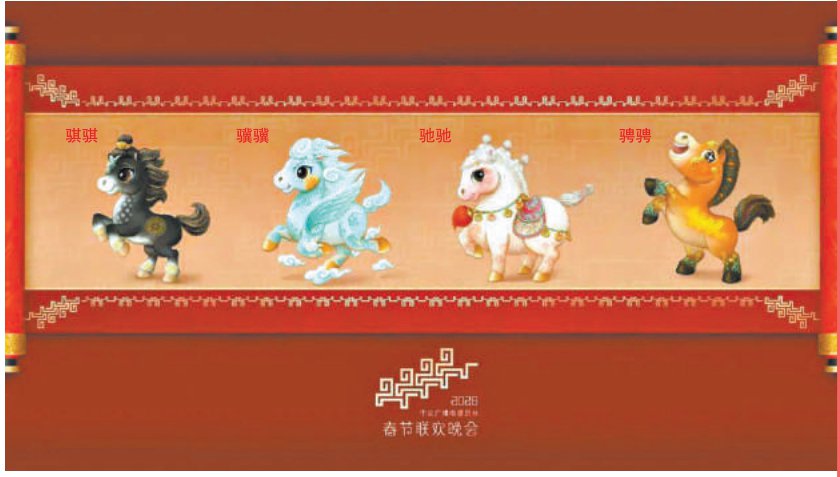 本报讯(记者 李夏至)四匹骏马齐亮相,骐骥驰骋踏新程!昨天,中央广播电视总台《2026年春节联欢晚会》吉祥物形象发布。