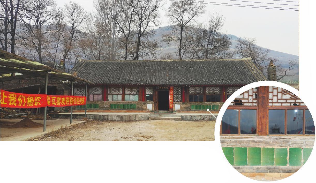 百年青砖瓦房被用作黄瓦窑琉璃展览馆,墙面上嵌着的绿釉琉璃砖格外显眼。