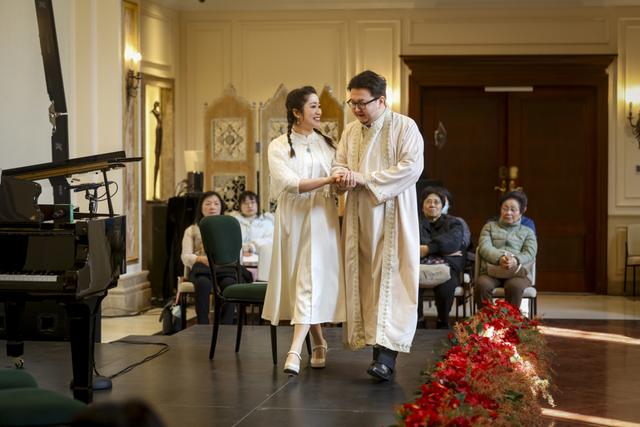 动人的不仅是台前,还有幕后。这部剧早在2001年开创了我国小剧场歌剧的先河,9年前《再别康桥》曾在“音乐午茶”1300期特别企划中,于2017年3月27日至31日连演了5场。当年的原版人马如今重聚的意义更丰厚——他们多为当年的上音学生,唯有钢琴伴奏兼导演李玮捷是上音老师。而如今,陈家坡成了李玮捷的同事,留在上音声歌系教学,其余几位都分别成为浙江音乐学院、苏州市歌舞剧院、上戏戏曲学院等艺术学院、专业院团的师者和歌者。“音乐午茶”及其观众,见证了他们的成长。在现场,还有几位观众竟然也是9年前看过他们“青涩”模样的观众。此番,他们的到来也是对演员的莫大鼓舞,对“音乐午茶”暖心的呼应。