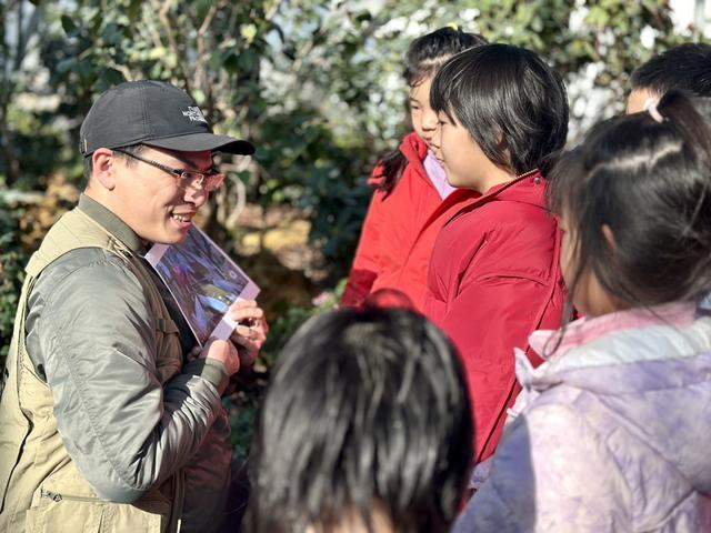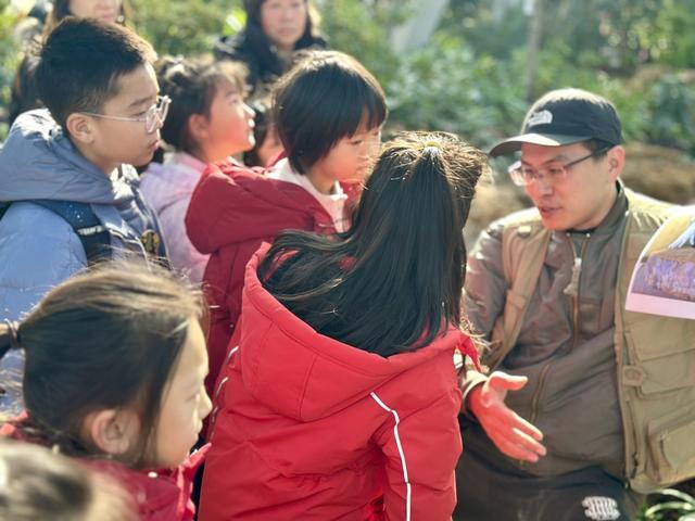 今天上午,5个植物观察“小分队”来到了园内不同区域。在北区温室的大树杜鹃前,导师正在为七八名孩子讲解它的特性:“大树杜鹃高可达十层楼、二三十米,开的花是粉色的,一次可开成千上万朵,非常漂亮。但它的生存范围大概只有五平方公里,生长环境苛刻,还面临着人类盗挖的威胁,因此非常珍贵。”