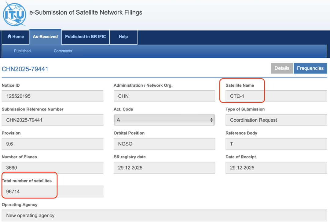 据上海证券报,记者查询国际电信联盟(ITU)官网获悉,我国2025年12月向ITU申请了超20万颗卫星的频轨资源。