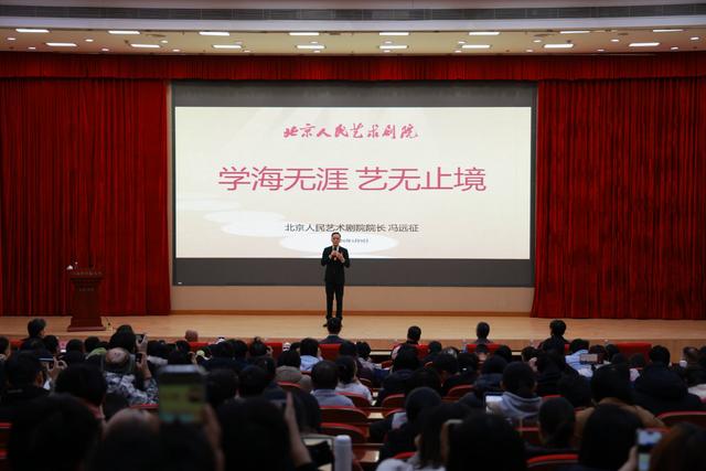 冯远征与国科大师生共话“艺术人生”。中国科学院大学供图“我既是这座艺术殿堂的传承者,也是受益者。”冯远征从北京人民艺术剧院的历史沿革与发展脉络等切入,讲述了这座艺术殿堂的发展故事。结合自身经历,冯远征还将艺术工作者精神与“两弹一星”精神、科学家精神并置。在他看来,“舞台的追光者和默默无闻的科学家,二者看似不同,其实是一路人:没有想象力,就没有钱学森突破性的弹道设想和一次次科技的飞跃,也没有演员眼里生动的角色。”