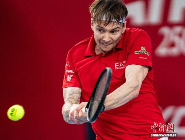 1月11日,ATP(男子职业网球协会)250级别比赛香港公开赛决赛在香港维多利亚公园网球场举行。男单决赛中,哈萨克斯坦选手亚历山大·布勃利克(Alexander Bublik)2:0战胜意大利选手洛伦佐·穆塞蒂(Lorenzo Musetti),获得冠军。图为布勃利克在决赛中回球。 中新社记者 侯宇 摄