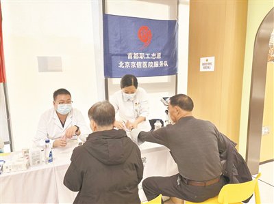 本报讯(记者 刘欣欣)为更好地服务广大职工群众,提升全民健康意识,近日,朝阳区医疗卫生工会下属北京京信医院工会组织医疗志愿团队前往朝阳区工人文化宫开展健康服务活动,为职工群众提供专业医疗咨询和健康服务。