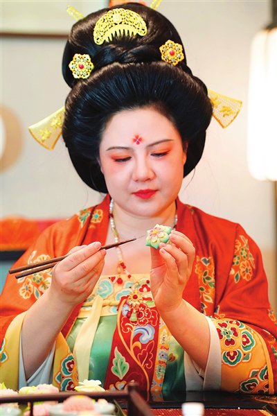 唐果子,是起源于唐代的传统特色糕点,佐茶而食,其造型精致、色彩丰富,曾在唐代宫廷贵族中流行。在西安,有着多年烘焙工作经验的“80后”李欢,一次偶然的机会与唐果子结缘。她和团队埋首于唐代饮食文献之中,成功“复现”出一枚枚精巧的唐果子,受到人们的欢迎。