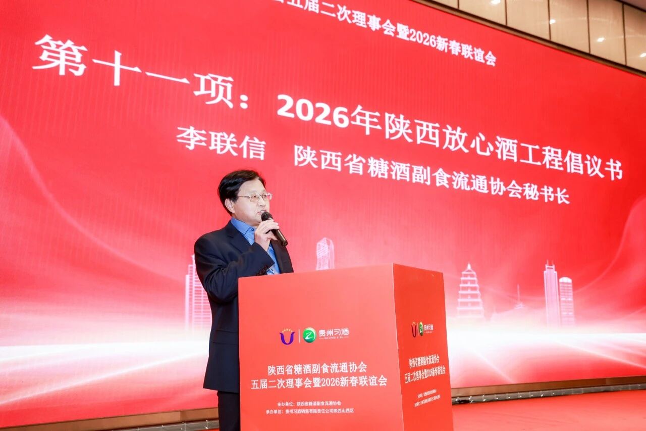 为了打造陕西酒类流通行业健康的发展环境,保证消费者权益,会上陕西省糖酒副食流通协会秘书长李联信宣读了《打造放心酒工程倡议书》,并宣布2026年陕西放心酒工程正式启动。
