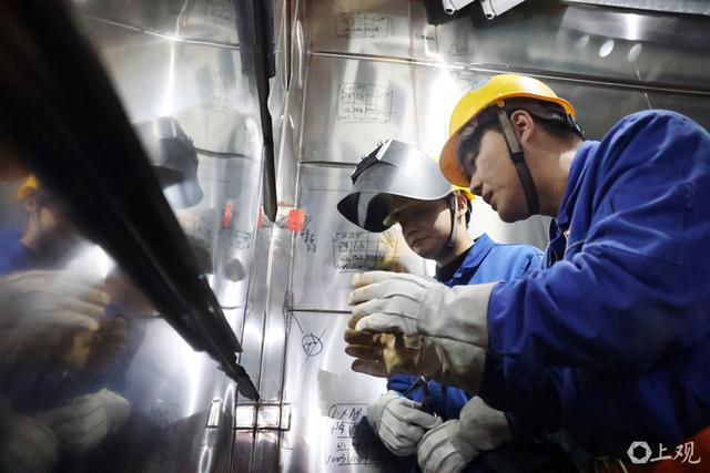 沪东中国技能带头人、大国工匠张冬伟在进行殷瓦钢焊接。