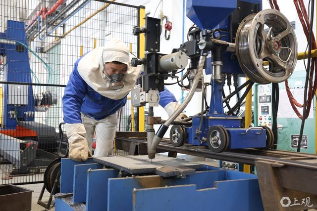 火花四溅的工业美学,工人们进行船体焊接作业。