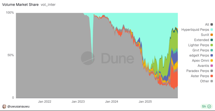 Perps 赛道本身也竞品迭出,最近的 aster 、 Lighter 、乃至于孙哥也下场,推让赛道抖三抖的 sunPerps ,宣发的推特 space 甚至创了在线人数新高的 web3 行业发布会。