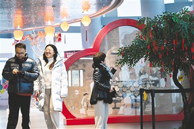 1月17日,观众在“天津之心”津塔观光厅内参观。近日,“东方雅韵·九河拾珍”天津非物质文化遗产展在310米高的“天津之心”津塔观光厅举办,市民、游客在领略传统文化魅力的同时,还可360度全景欣赏天津的城市风光。 新华社记者 赵子硕 摄