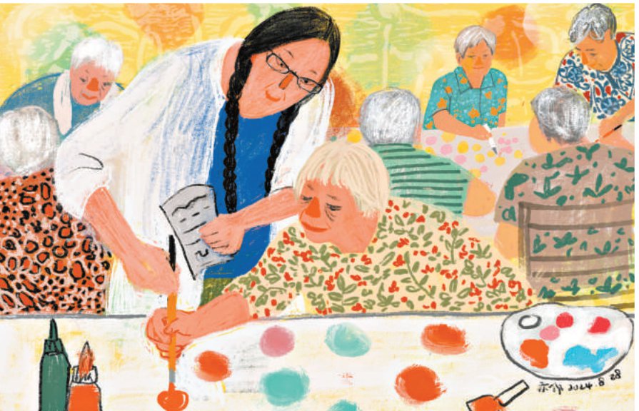 虽然衰老的形态各异,但回忆能让他们重获存在的价值。当老人们颤巍巍地举起自己拼贴的小画,或是端详着笔下不成形的线条,脸上绽开孩子般的笑容时,我便知道,至少在那几个小时里,他们战胜了漫长的等待与孤独。