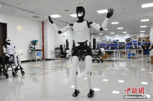 1月21日,在河南郑州中豫具身智能实验室,智能机器人于多模态感知及复杂场景内开展训练测试。2024年10月,该实验室正式揭牌,目前其技术成果已在公共服务、文旅融合等诸多领域落地应用。图为组装完成的智能机器人。 王宇 摄