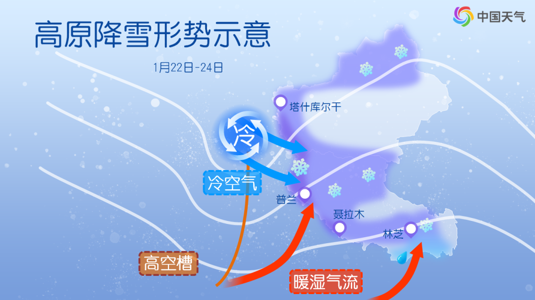 今天起至24日,新疆西部、西藏西南部将成为降雪核心区,明天是此轮降雪的最强时段。