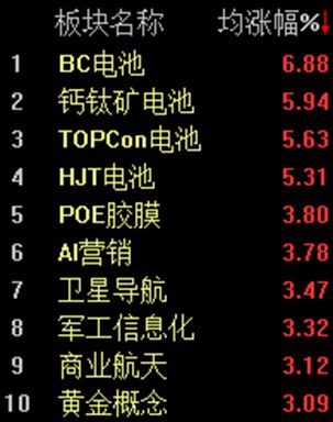 板块方面,商业航天概念走高,、、、等多只个股涨幅较大。光伏概念爆发,太空光伏方向领涨,、、、、涨幅居前。
