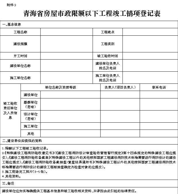 附件 2 青海省房屋市政限额以下工程竣工销项登记表