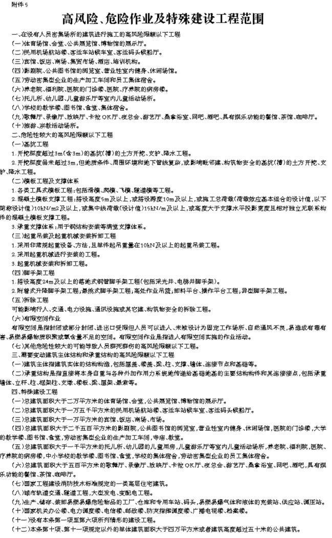 附件 5 高风险、危险作业及特殊建设工程范围