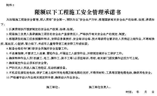 (三)《限额以下工程施工安全管理承诺书》(附件3)。