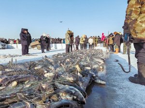 清晨的二龙湖气温低过-20℃,却丝毫挡不住八方游客的热情。“出鱼喽……”随着“鱼把头”一声吆喝,捕鱼汉子雄浑高亢的号子声响彻云霄,拖拉机牵动绞盘,拖拽千米巨网缓缓出水,一尾尾10余斤重的鲢鱼在冰面上欢腾跳跃。传承千年的渔猎盛景,引得现场掌声与喝彩声此起彼伏。
