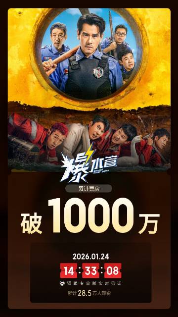 据猫眼专业版数据,电影《爆水管》上映2天,总票房破1000万。