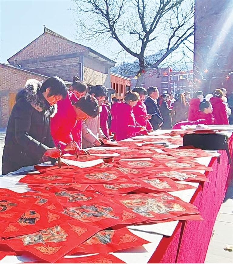 灵台县文联党员干部为关爱对象送春联、贴“福”字。