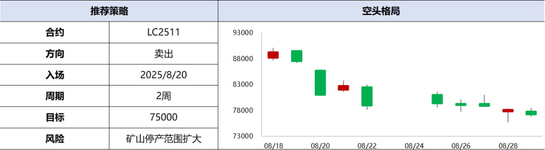 碳酸锂周度产量维持在1.9万吨之上,辉石提锂产线增产积极,库存虽不断向下游转移,但总库存去化偏慢,短期供给维持宽松局面,锂价走势仍将承压,但9月30日宜春矿企需递交储量核实报告,锂资源端事件扰动预期仍存,前空谨慎持有。8月多晶硅产量大幅增加,目前云南地区某基地已达满产状态;新疆、青海地区存在新增投产及复产增量的情况,整体呈现供大于求的市场格局。多晶硅企业库存下降,库存向下游转移,但行业整体库存累积。目前产能出清具体路径并不明确,预计短期内多晶硅市场将保持弱势运行。
