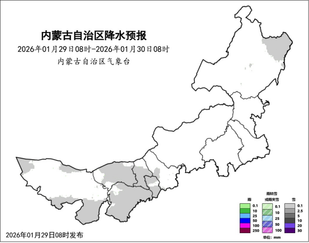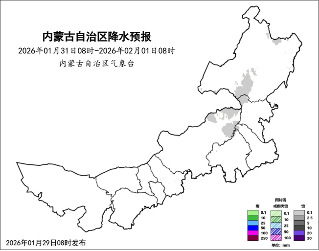 今起三天(1月29日至31日),新一轮冷空气将给内蒙古带来大面积降温,局地降温幅度超8℃,西部地区最高气温再度降至0℃左右。降温的同时,全区自西向东还将出现降雪天气。西部偏西、东部偏南和偏东地区有4、5级局地6级西北风。请公众密切关注天气动态,外出防风保暖,应对降雪和道路结冰,提前做好防范措施。