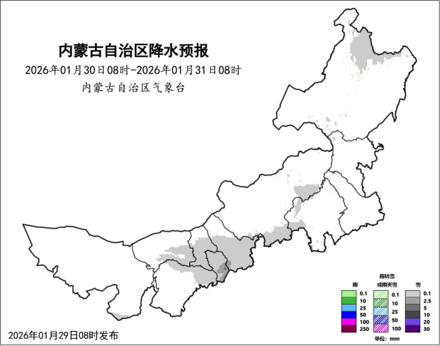 腊月以来,内蒙古冷空气的“小动作”依旧频繁。今天白天到夜间,降雪先从中西部开启,乌兰察布市以西各地普遍多云转小雪。明天白天,我区西部偏东、中部偏南和偏东、东南部偏西北、东北部偏西和偏北地区有小雪,其中,呼和浩特市南部和东部、乌兰察布市西南部部分地区有中雪,局地有大雪。后天,降雪范围大幅收缩,仅锡林郭勒盟东北部、通辽市西部、兴安盟西北部和呼伦贝尔市局部有小雪,其余大部以晴为主。
