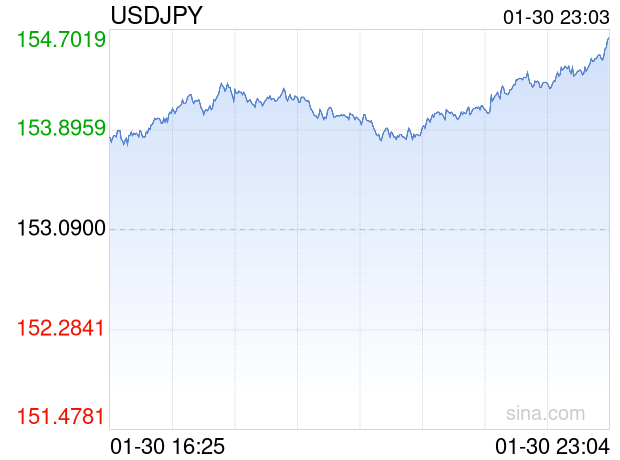 新浪外汇消息2026年01月30日,截至23时03分,外汇市场上汇率突破1美元兑换154.6300日元。涨幅为1.0059%