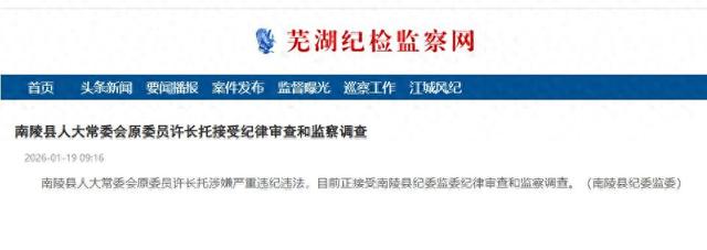 南陵县人大常委会原委员许长托涉嫌严重违纪违法,目前正接受南陵县纪委监委纪律审查和监察调查。(南陵县纪委监委)