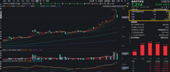 有色急速降温,隔夜贵金属市场突发巨震,周五金银价格再度跳水,现货黄金价格失守5200美元。然而同一时间,瑞银大幅上调黄金目标价,将2026年3月、6月、9月的黄金价格目标上调至6200美元/盎司,理由是投资增加带动的需求强于预期。高人气有色ETF华宝(159876)场内价格收跌9.61%,资金逆市增仓1.56亿份,彰显强信心。