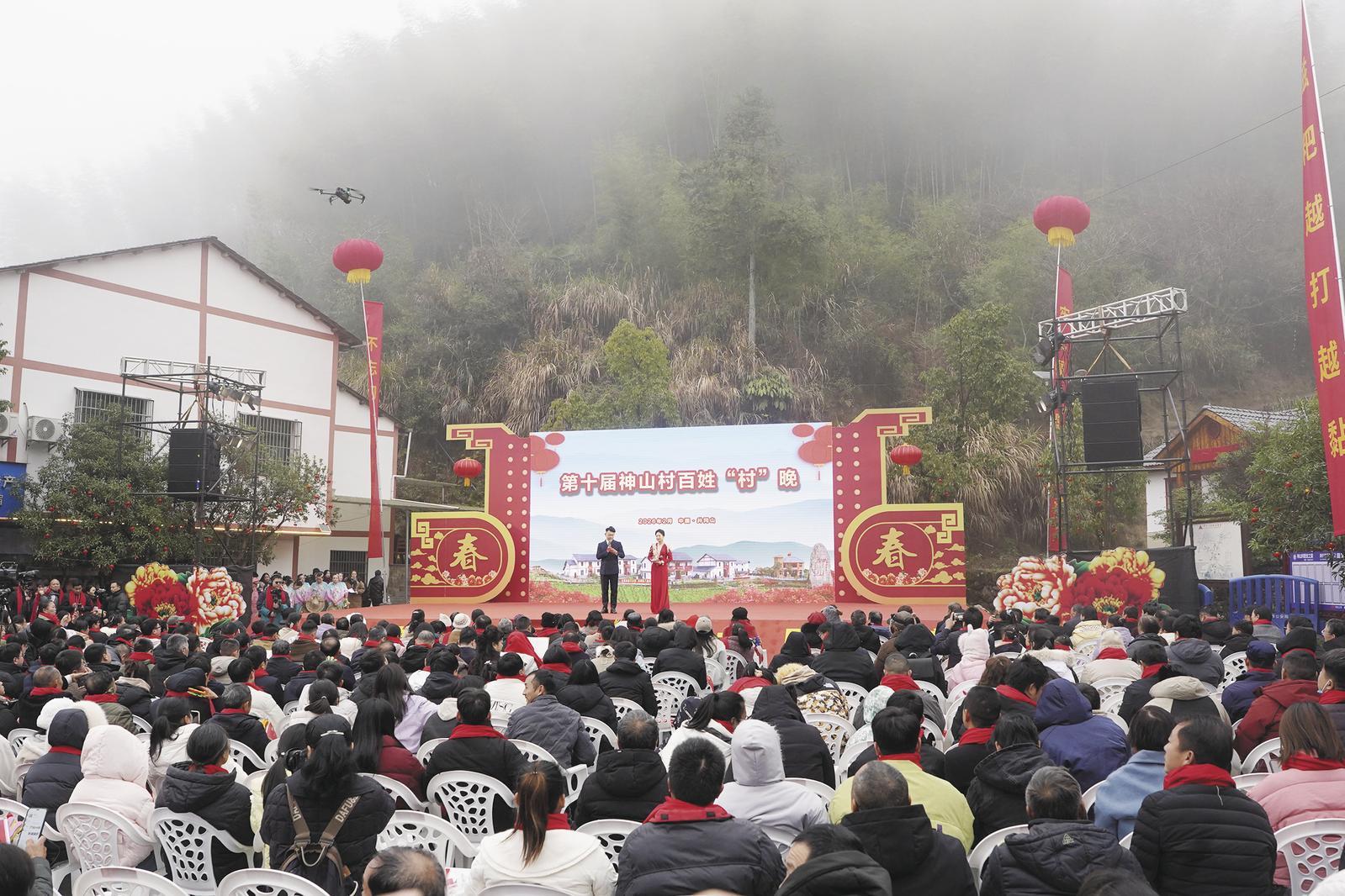 神山村举办的联欢活动现场(2月1日摄)。