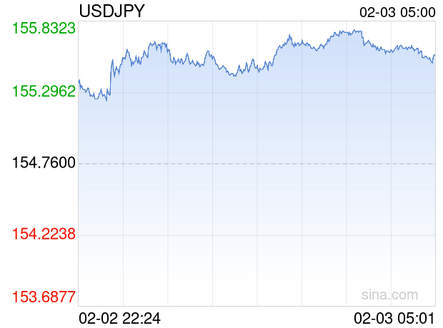 新浪外汇消息2026年02月03日,截至05时00分,外汇市场上汇率突破1美元兑换155.5800日元。涨幅为0.5299%