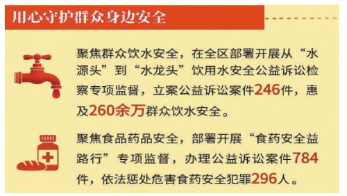 2025年,新疆检察机关坚持以人民为中心的发展思想,持续深化“检护民生”专项行动,努力为人民群众办好事、办实事、解难事。全疆检察机关部署开展饮用水安全公益诉讼检察专项监督,立案公益诉讼案件246件,惠及260余万名群众饮水安全。开展“食药安全益路行”专项监督,办理公益诉讼案件784件,依法惩处危害食药安全犯罪296人。开展“检察公益诉讼护航安全生产”专项监督,办理公益诉讼案件536件,督促消除安全隐患2956处。