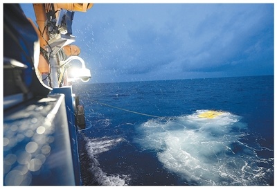 科研人员对6000米级深海无人遥控潜水器“海琴”号进行海试。新华社记者 张建松摄