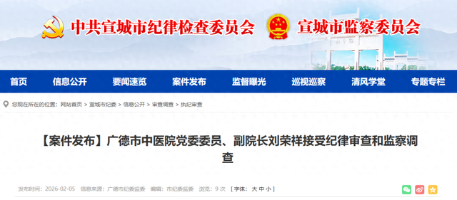 广德市中医院党委委员、副院长刘荣祥涉嫌严重违纪违法,目前正接受广德市纪委监委纪律审查和监察调查。(广德市纪委监委)