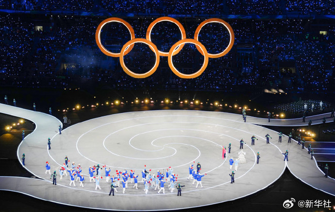 中国体育代表团旗手宁忠岩、张楚桐高举五星红旗,中国冰雪健儿每一步,都踏着滚烫的梦想!期待他们破冰驭雪,载誉而归!