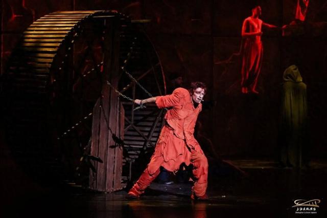 灯光色调变化制造出的快速切场,正应和一唱到底的节奏,仿佛推动情节向前发展的,不再是雨果精心搭建的巧合与佳构,而是角色间和弦一般交织、共振的情绪流。兽首柱、铜钟、墙壁、囚宠等精要道具的凝练呈现,则让上海文化广场深旷的舞台由此敞开,成为容纳舞蹈之撇捺的一卷帛书。