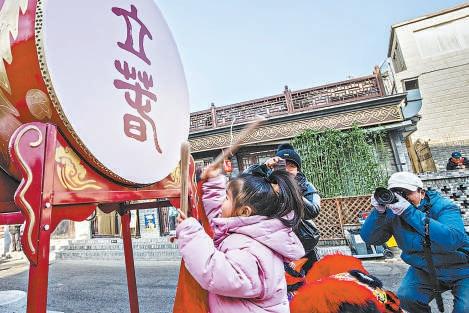 北京石景山模式口,小朋友敲响写有立春的大鼓。常山 摄