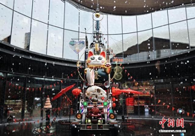 2月8日, 四川成都,展出的装置作品《饱满之城》。当日,“烟火指数·成都双年展”在成都市美术馆拉开帷幕。本届双年展汇集全球29个国家和地区、251位艺术家的328件/组作品,以“烟火指数”为主题,设置六大版块及户外展区,从艺术的视角呈现日常生活,并解读一座城市的活力与幸福感。中新社记者 王磊 摄