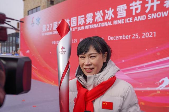 新华社照片,长春,2021年12月25日 (走近冬奥)(3)北京2022冬奥会火炬开始在吉林省进行展示 12月25日,速滑世界冠军叶乔波在活动现场手持火炬进行展示。 当日,北京2022年冬奥会火炬展示活动在吉林省吉林市北大湖滑雪场举行。本场活动结束后,冬奥火炬还将陆续在长春、通化、进行展示。 新华社记者 张楠 摄