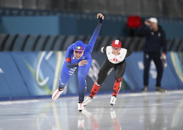新华社照片,米兰(意大利),2026年2月7日 2月7日,冠军意大利选手洛洛布里吉达(前)在比赛中。 当地时间2月7日,米兰-科尔蒂纳冬奥会速度滑冰女子3000米决赛在意大利米兰举行。 新华社记者 武巍 摄