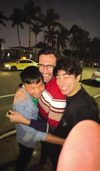 “两位外国友人给了我太多感动,是我这辈子没有过的。”罗师傅向记者讲述了自己的成长经历,“父母早逝兄弟姐妹五人相依为命,大姐担起了家里的重担,我刚上初一就辍学了,我甚至连拼音都不太会用,发微信都靠手写。他们没有看不起我,反而一直鼓励我,一路上太多太多感人的细节,不敢回忆太多,不然又要掉眼泪了。”当看到两人准备的相册和特产,39岁的海南汉子像孩子一样哭出了声,三个人抱在一起互相鼓励互相加油:“我们终于做到了!”