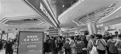 昨日9时30分,在海口国际免税城B1层海口市中免日用消费品免税店区域,记者看到,“海南居民可享‘零关税’”的宣传牌和“开业大吉,生意兴隆”的吉祥语,随处可见,引人注目,现场充满浓郁的喜庆气氛。