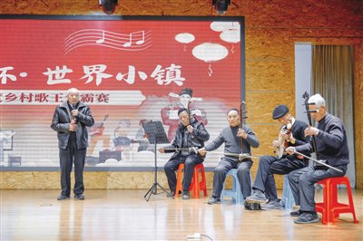 在南浔古镇,南浔区“村K歌王”争霸赛决赛一开唱,古色古香的街区瞬间变成音乐广场。“唱了歌曲《天路》,是我特意挑选的!”参赛选手郑火根笑着说,在“村K”,大家想唱就唱,每个普通人都成了歌手,能够享受演出、享受掌声。