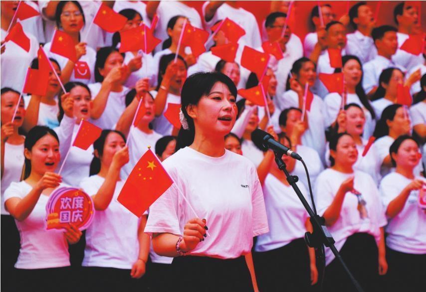 连日来,各地群众开展丰富多彩的活动,喜迎国庆、中秋“双节”。图为9月30日,在河南省南阳市区万悦城广场,当地群众齐唱歌曲《我和我的祖国》。