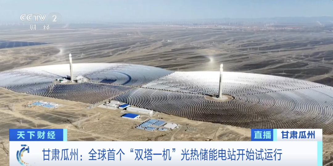 1日上午,全球首个“双塔一机”光热储能电站在甘肃瓜州开始进入试运行阶段。光热储能电站,就是通过定日镜将太阳光聚焦至吸热塔,加热熔盐介质并将热能传递至发电系统。此项目正式投产后,将和附近的风电、光伏电站一起,每年为电网提供18亿度的清洁能源。1日,超两万块定日镜“聚光集热”将西塔成功点亮。