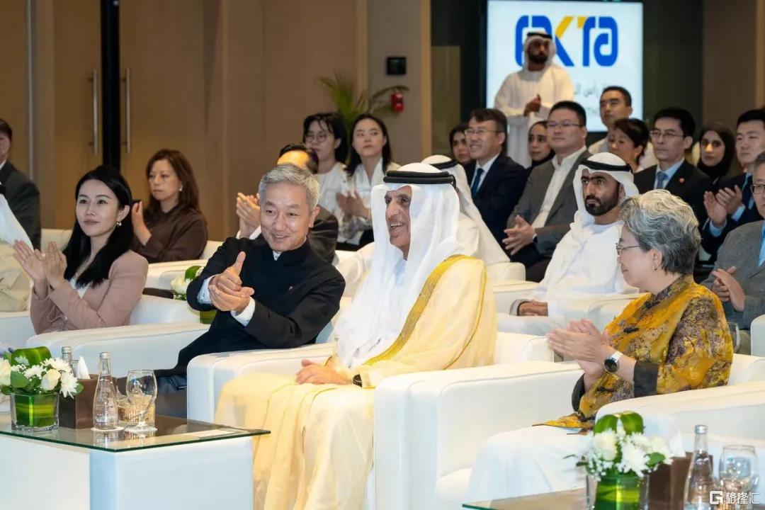 图右为阿联酋哈伊马角酋长His Highness Sheikh Saud bin Saqr Al Qasimi,图左为文远知行资深副总裁钟华