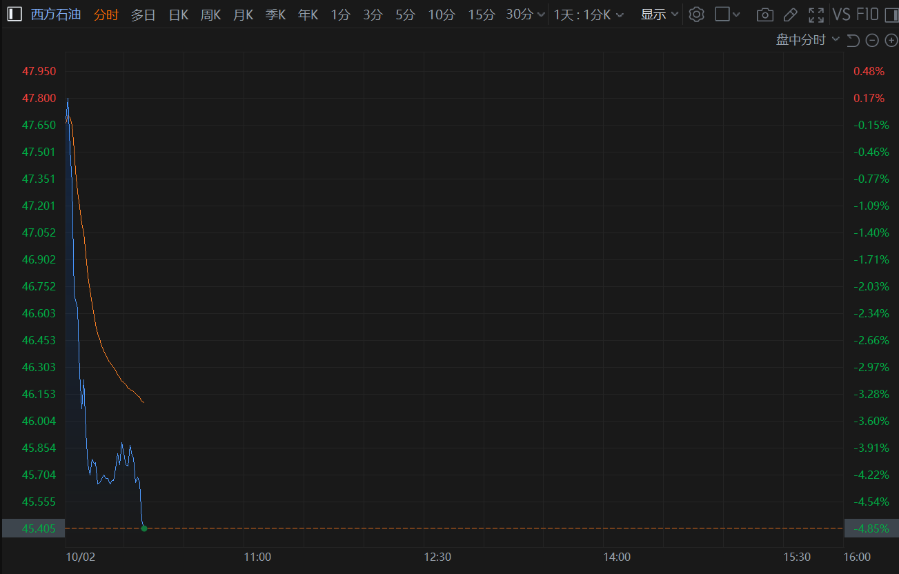 西方石油(OXY.US)短线下挫近5%报45.4美元。消息上,伯克希尔哈撒韦将以97亿美元收购西方石油旗下的石化业务OxyChem,这也将成为伯克希尔自2022年以来最大的一宗收购。西方石油计划利用从伯克希尔交易中获得的65亿美元收益来偿还债务,从而实现其将主要债务降至150亿美元以下的目标。